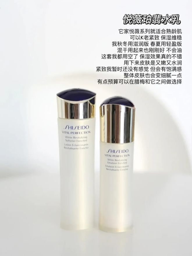 这套水乳也是贵妇中蛮火的一套水乳了,据说也是根据亚洲人肌肤去设计的,它有两个版本,清爽型和滋润型,清爽型适合油皮和混油皮的姐妹使用,我这个干皮秋冬就只能用滋润型啦。